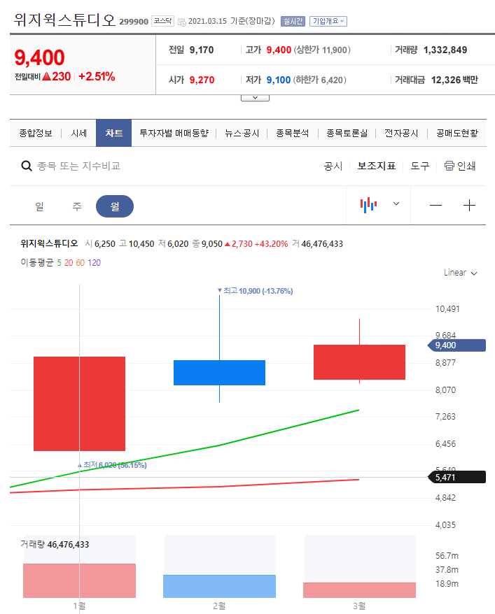 위지윅스튜디오에요..위지윅스튜디오는 중소형 컨텐츠 제작사 중에서는 독보적으로 컴퓨터 그래픽 및특수효과 기술까지 보유하고 있는 기업에요.. 이는 메타버스 세계를 구축하는데필수적인 기술이기 때문 에 메타버스 관련주 로서, 메타버스의 산업 성장에 따른수혜를 받을 것으로 예상되고 있다!!!!:).