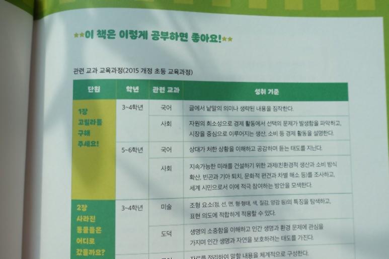 환경 소녀 푸링이와 함께#멸종위기의동물들을구해줘! 라는#해서 공과연계 해서 공부한다면 나쁘지않아요!2015 개정 초등 교육과정이 안내되어 있죠.더 깊이 상념해 보고 활용할 수 있게 안내되어 있으니 놀이로만 끝나지 않아 좋더라고요.