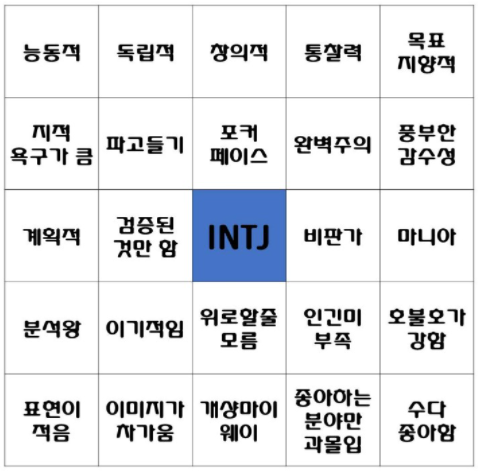 안녕하세요~!! 오늘은 MBTI 성격유형 중 INTJ에 대해서 알아보겠습니다.